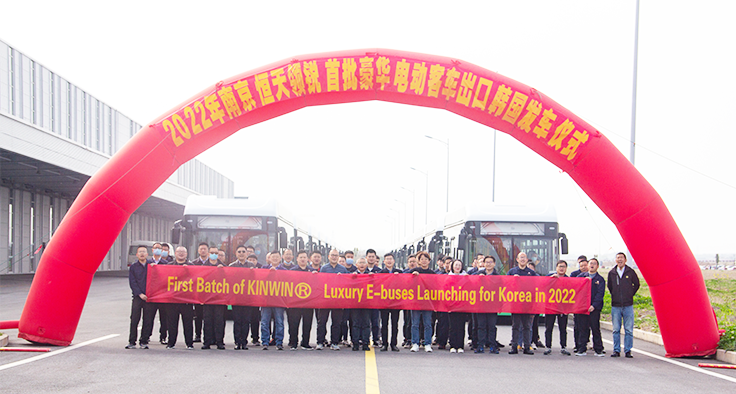 Mar. 2022 CHI Bus entrega 46 unidades de autobuses eléctricos puros de lujo de 11 metros a clientes coreanos en una sola entrega